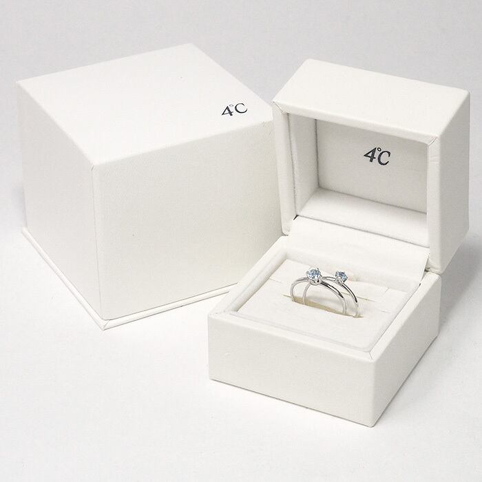 4℃ アクアマリン 2連 リング 8号 Pt950 仕上済
