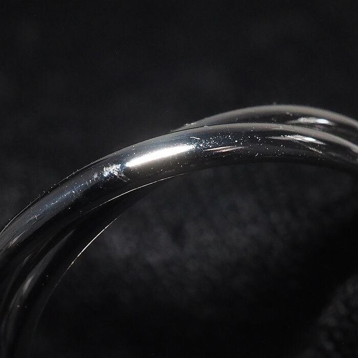 備考:透明感のあるアクアマリンをあしらった、プラチナ950製の2連リングです。アームに僅かな傷が残っておりますが、こちらは仕上済商品の為、全体的に状態の良いお品でございます。
