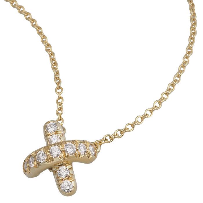 ティファニー TIFFANY&Co. クロス ステッチ ダイヤモンド ネックレス K18YG 仕上済