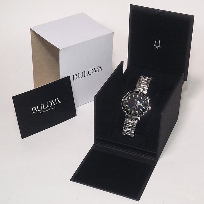 備考:6ヶ月保証付き。1970年にブローバが発売したダイバーウォッチ「オーシャノグラファー」の復刻モデル。当時300フィート(約90m)防水が一般的だったところ、666フィート(約200m)という高防水を実現し、ヨーロッパ&日本地域限定で誕生した一本です。裏蓋にスレとケースに極小の傷が見られますが、こちらは未使用展示品の為、とても良い状態のお品でございます。