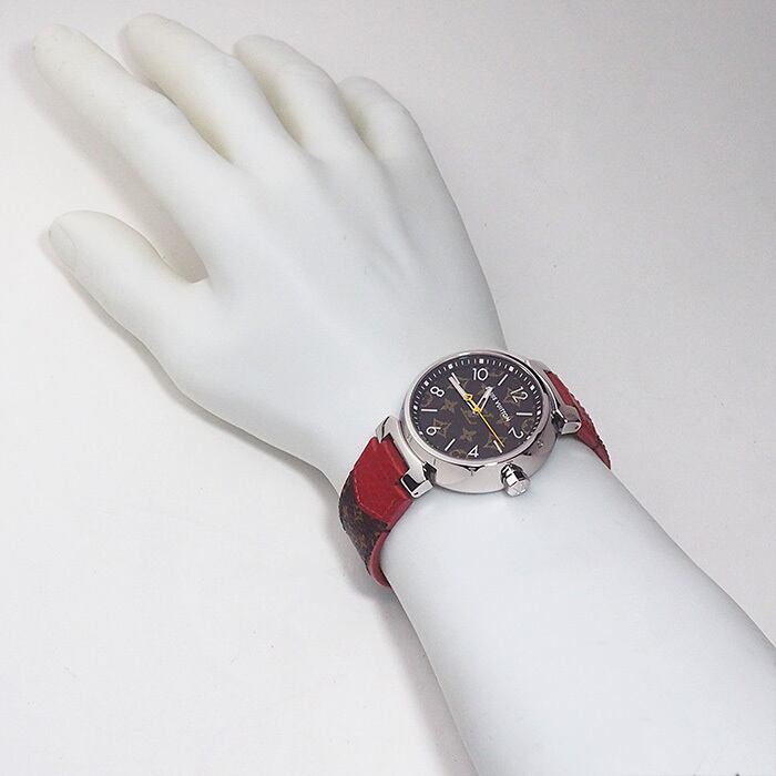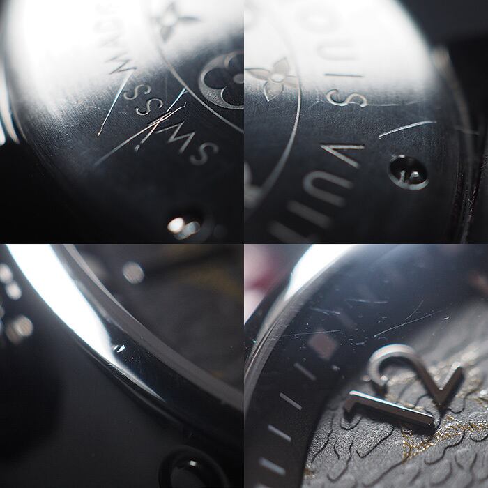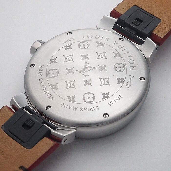 備考:6ヶ月保証付き。2002年に創作されたルイヴィトンの本格ウォッチコレクション「タンブール」。ブランドを象徴するモノグラムをダイヤルに採用したクオーツモデルです。バンドに穴の広がり・裏に色褪せと汚れ・コバに僅かな小スレがあり使用感がございます。ガラスコーティング膜と裏蓋にスレ、ベゼル・ケース・尾錠に小傷が残っておりますが、こちらは仕上済商品の為、状態の良いお品でございます。